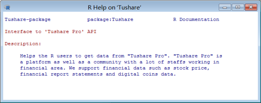 如同安装过程,在载入Tushare的同时,R也会自动载入其依赖的包。